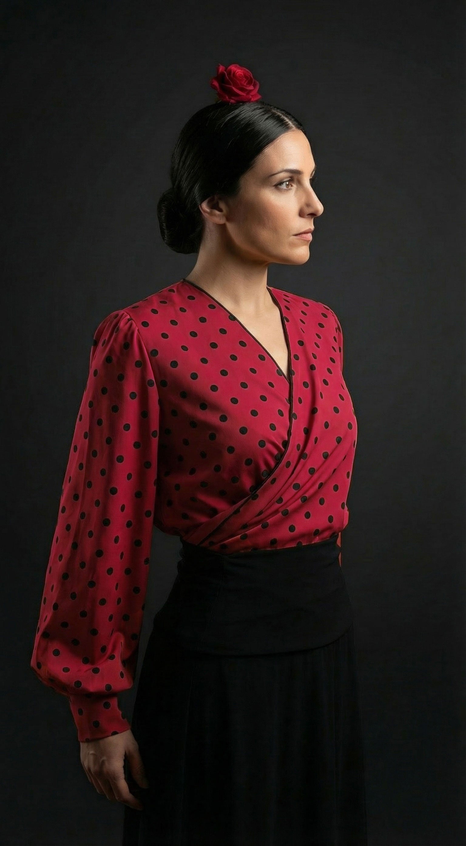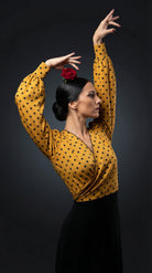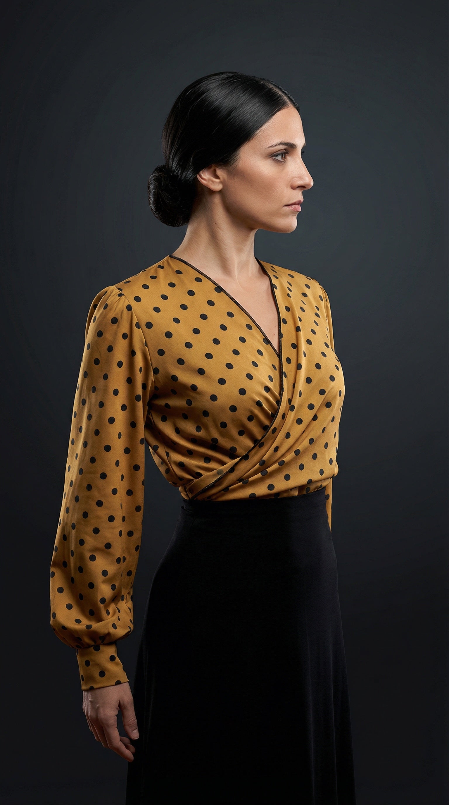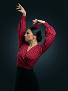 Scaldacuore flamenco a pois con design incrociato e maniche ampie.