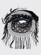 Capa integrada en tul elástico ligero, con flecos negros de 30 cm y confección en malla que favorece el movimiento.