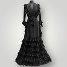 Pañoleta – Capa triangular terminada con volantes fruncidos que realzan el escote y dan volumen.