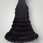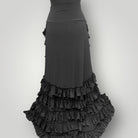 Falda de largo medio con volante incorporado. Decorada con cinco volantes de 8 cm de alto, la falda se realza con el volante incorporado en la cinturilla, también adornada con volantes. Juntos, crean ritmo y aportan un movimiento armonioso. Nota: El volante no está separado, sino unido a la falda.