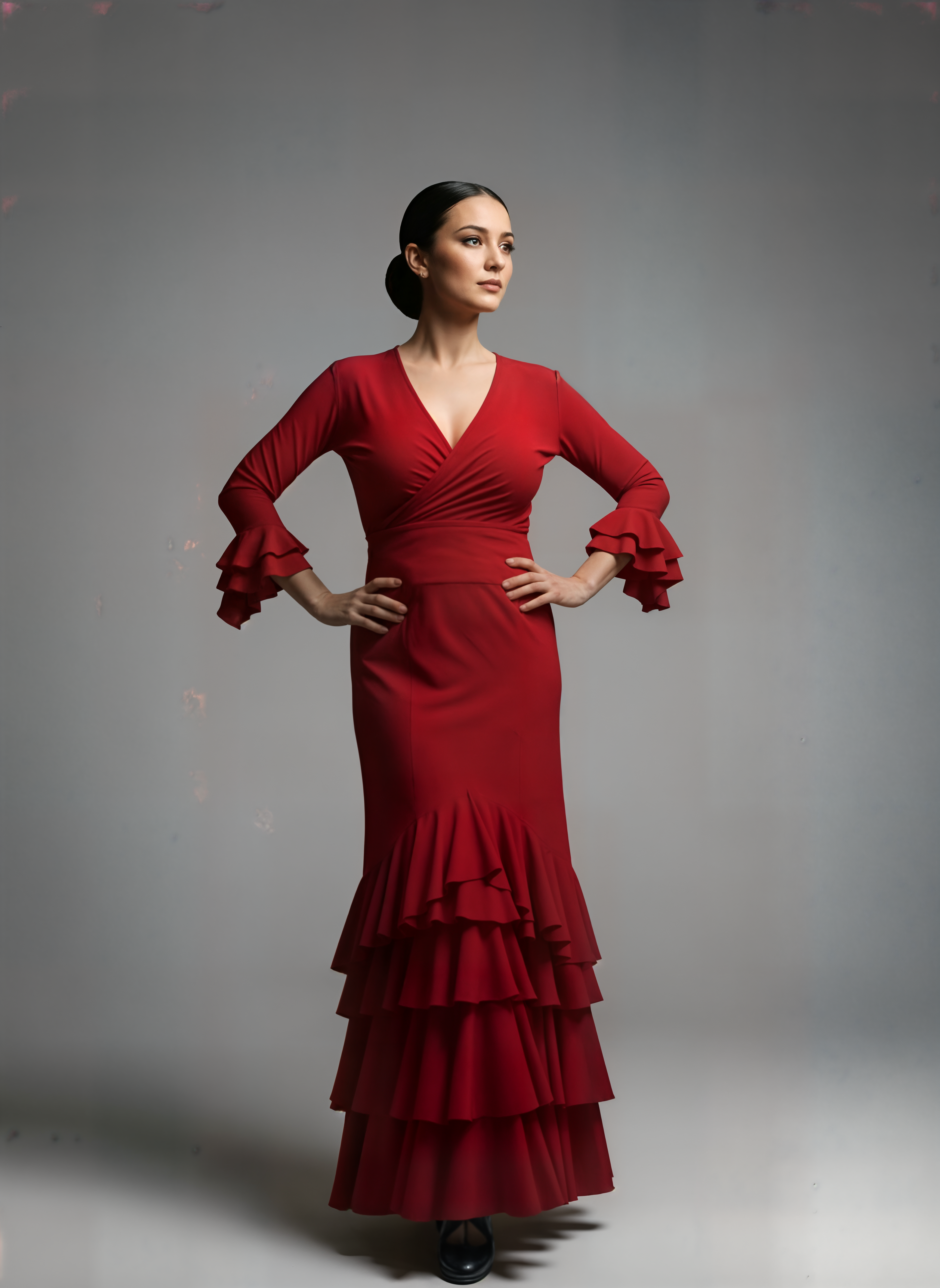 Una falda de elegancia sencilla pero intensa , perfecta para quienes desean una prenda que aúne estética y funcionalidad en el baile flamenco.